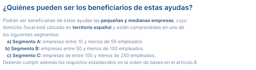 Este programa, impulsado por el Gobierno de España y gestionado por Red.es, entidad vinculada al Ministerio de Transformación Digital y Función Pública a través de la Secretaría de Estado de Digitalización e Inteligencia Artificial y financiado a través de los fondos NextGeneration EU que se enmarca dentro del Plan de Recuperación, Transformación y Resiliencia, tiene como objetivo ayudar a las pymes con entre 10 y 249 empleados a avanzar en su proceso de digitalización.